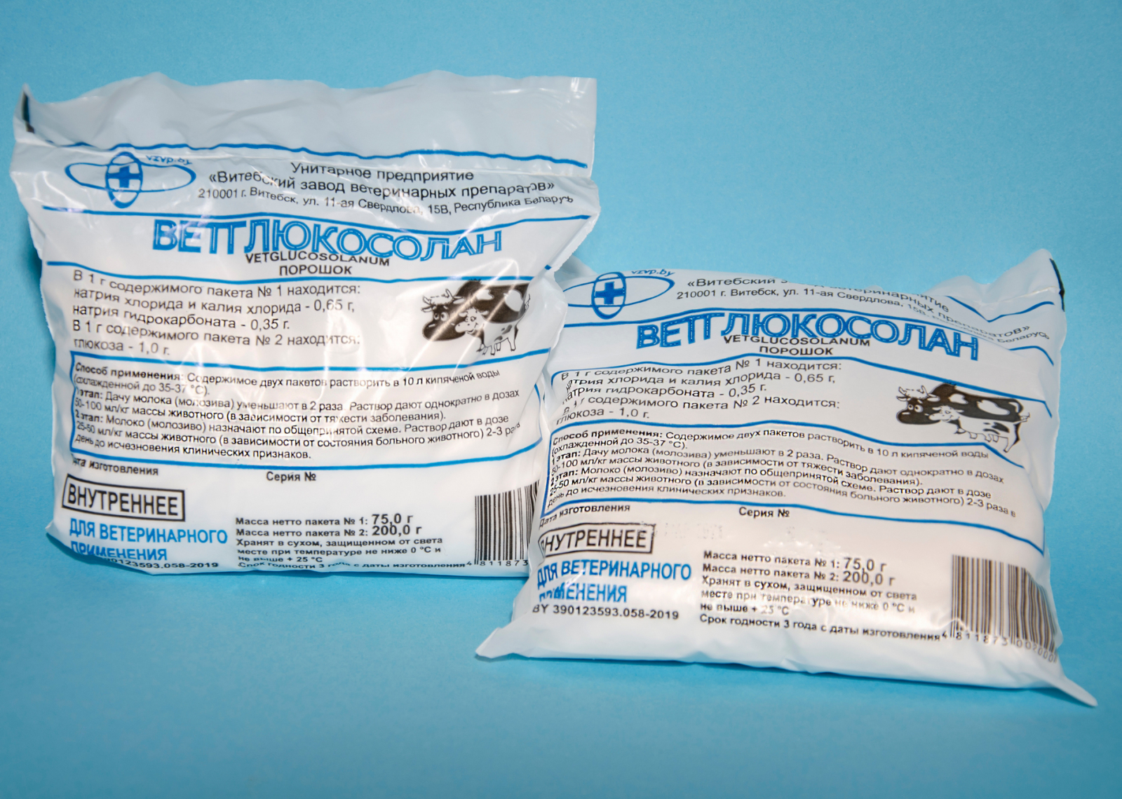 Ветглюкосолан применяют при желудочно-кишечных болезнях телят, сопровождающихся диареей, в качестве регидратационного средства.